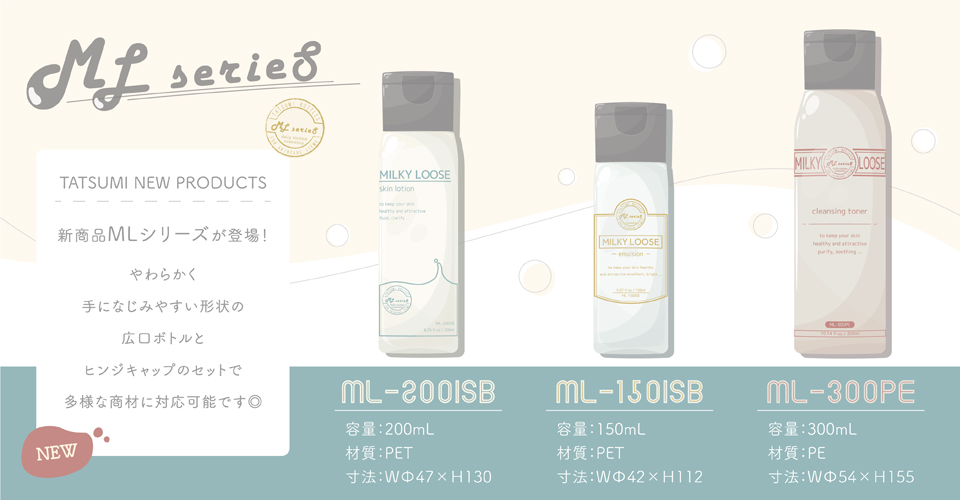 【製品紹介】 手のなじみやすさ、中身の注ぎやすさを考えた広口ボトルと 片手で開閉しやすいヒンジキャップがセットになったシリーズが新登場 PET、PE 共に中身を押し出しやすいやわらか設計なため 化粧水、乳液、シャンプーなど、様々な商材に対応できます◎
