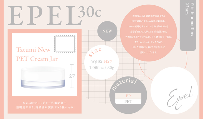 透明度が高く、 高級感が演出できるPET素材のクリーム容器が新登場。
